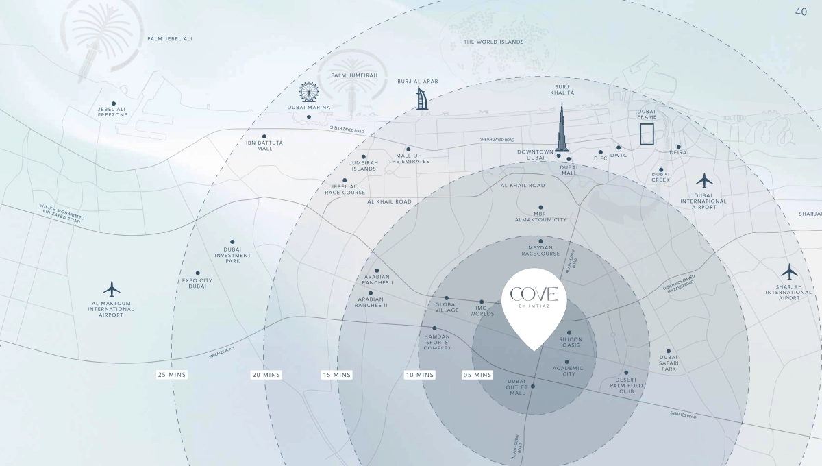 Located at Dubailand Residence Complex, Dubailand is a perfect spot in Dubai where you can enjoy both peace and pace in lifestyle. With nearby main roads, highways and transportation networks you can reach anywhere in the city at any time within a few minutes. Whether you’re a working professional or a family looking for a calm and well-connected area, Imtiaz Cove Living is the best place for you.